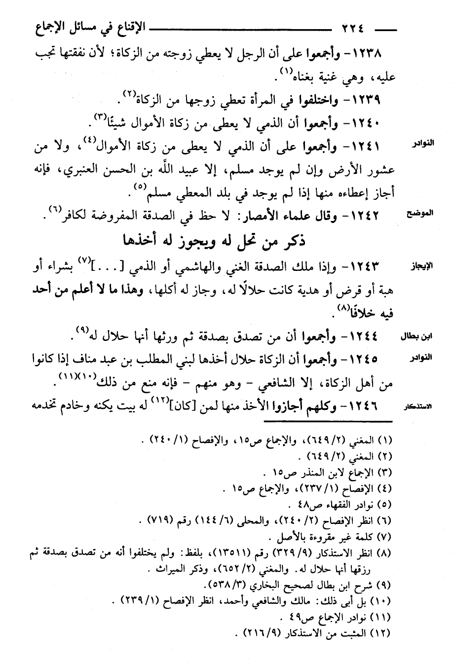 ١٢٤٥ - وأجمعوا أن الزكاة حلال أخذها لبني المطلب بن عبد المناف إذا كانوا من أهل الزكاة، إلا الشافعي - وهو منهم - فإنه منع من ذلك.