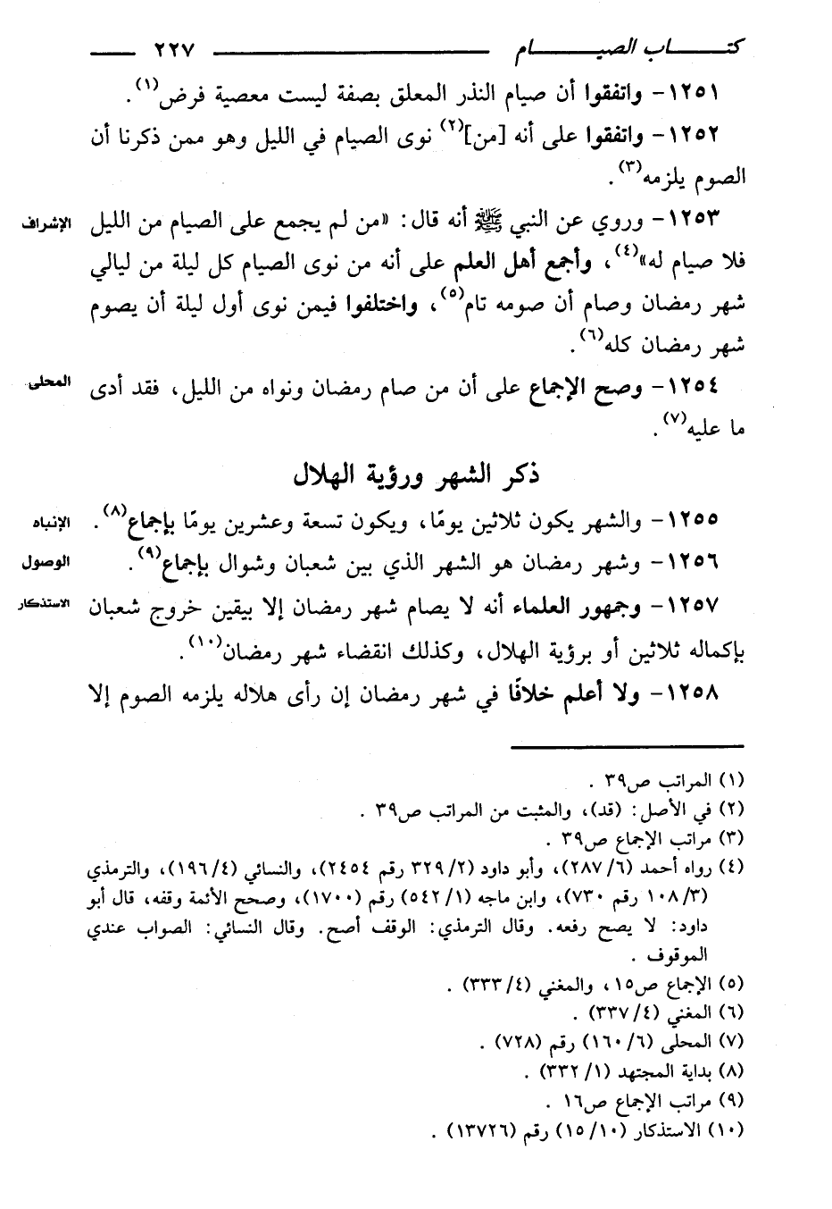١٢٥٥ - والشهر يكون ثلاثين يومًا، ويكون تسعة وعشرين يومًا بإجماع.