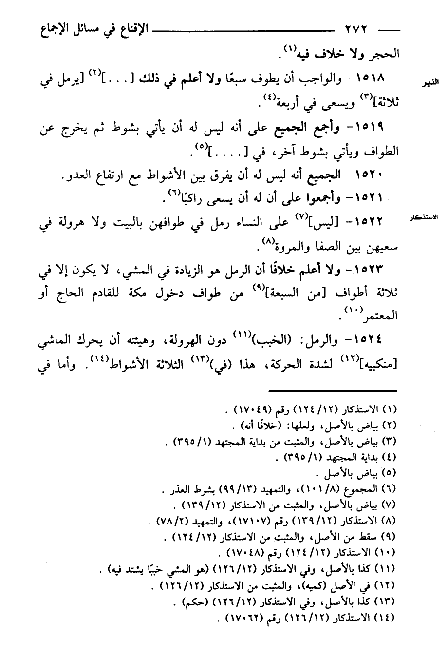 ١٥١٨ - والواجب أن يطوف سبعًا ولا أعلم في ذلك [...] [يرمل في ثلاثة] ويسعى في أربعة.