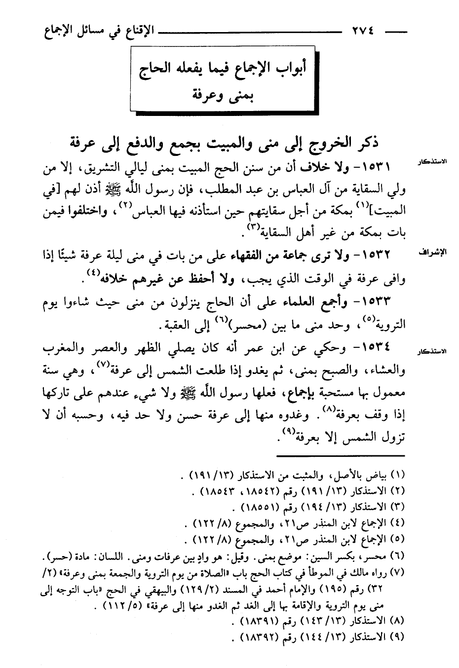 أبواب الإجماع فيما يفعله الحاج بمنى وعرفة