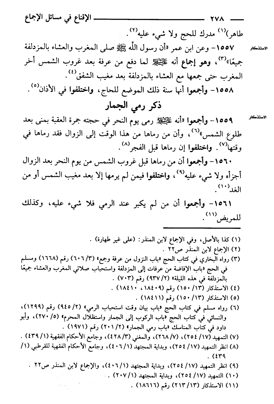 ١٥٥٨ - وأجمعوا أنها سنة ذلك الموضع للحاج، واختلفوا في الأذان.