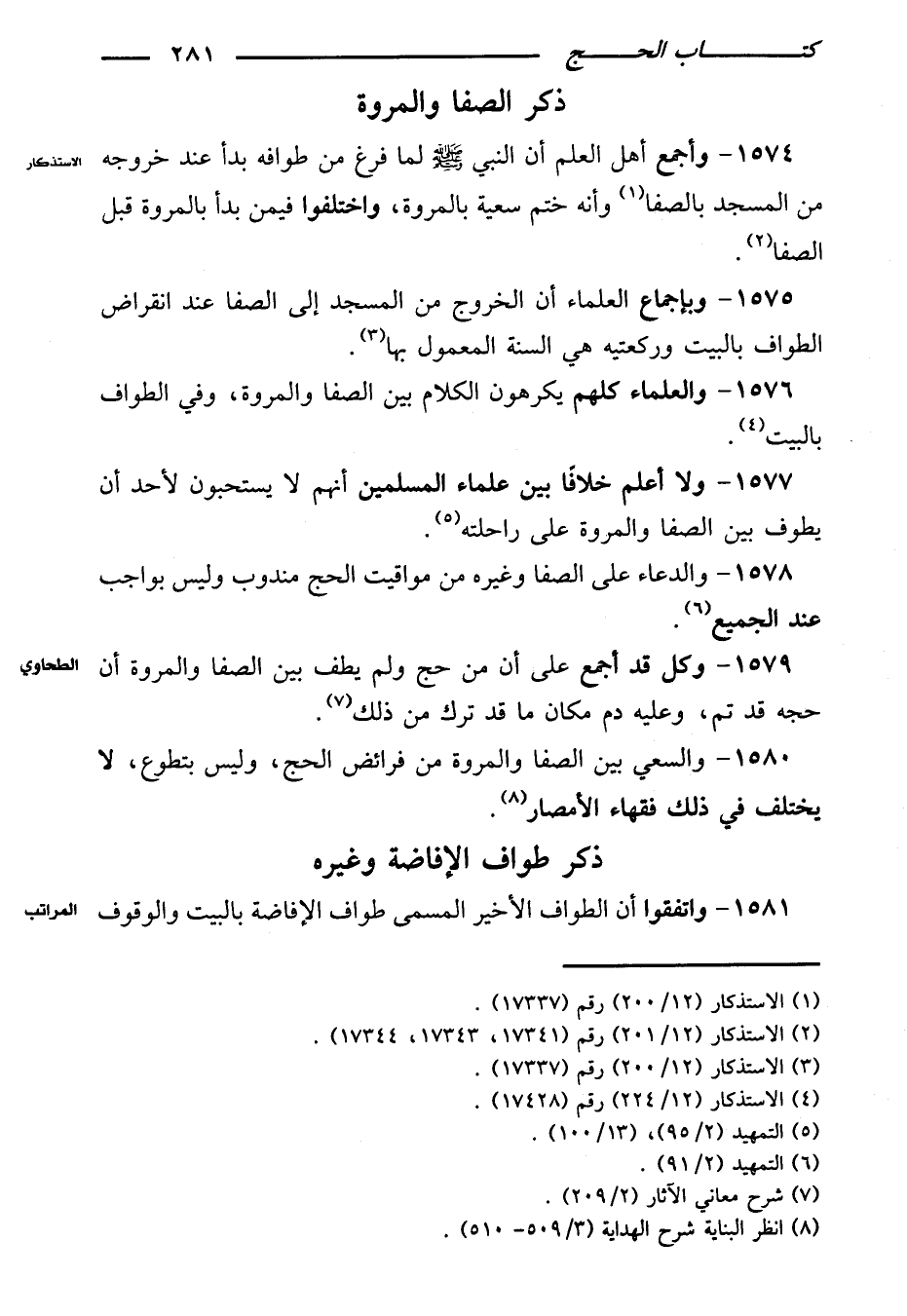 ١٥٨٠ - والسعي بين الصفا والمروة من فرائض الحج، وليس بتطوع، لا يختلف في ذلك فقهاء الأمصار.