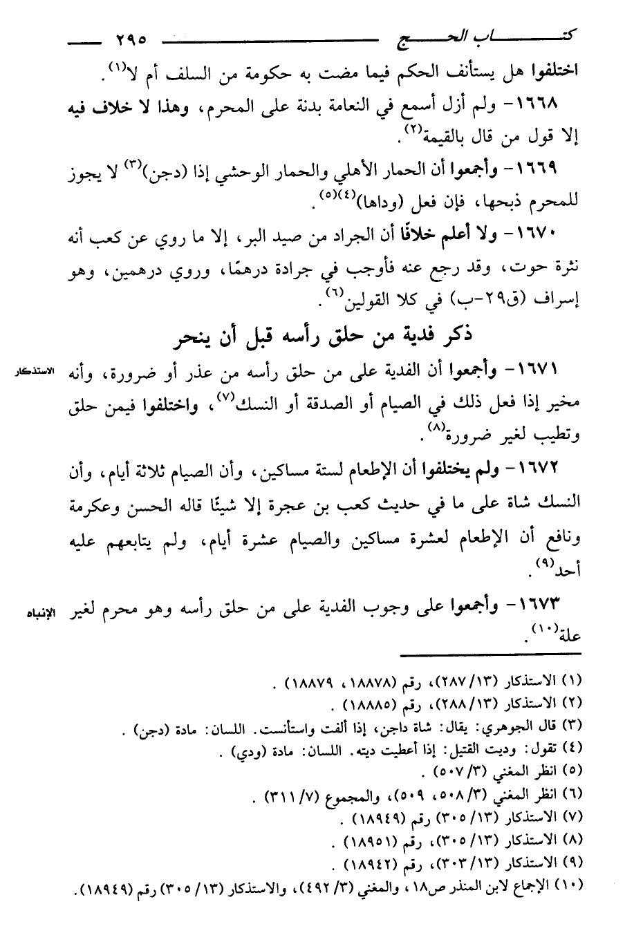 ١٦٦٩ - وأجمعوا أن الحمار الأهلي والحمار الوحشي إذا (دجن) لا يجوز للمحرم ذبحها، فإن فعل (وداها٩.
