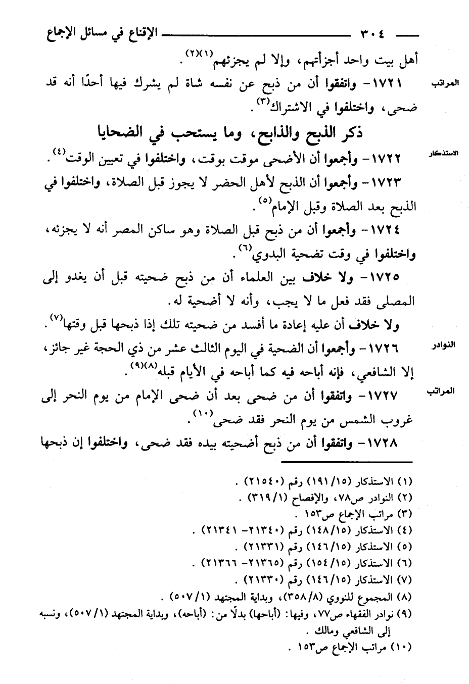 ١٧٢٢ - وأجمعوا أن الأضحى موقت بوقت، واختلفوا في تعيين الوقت.