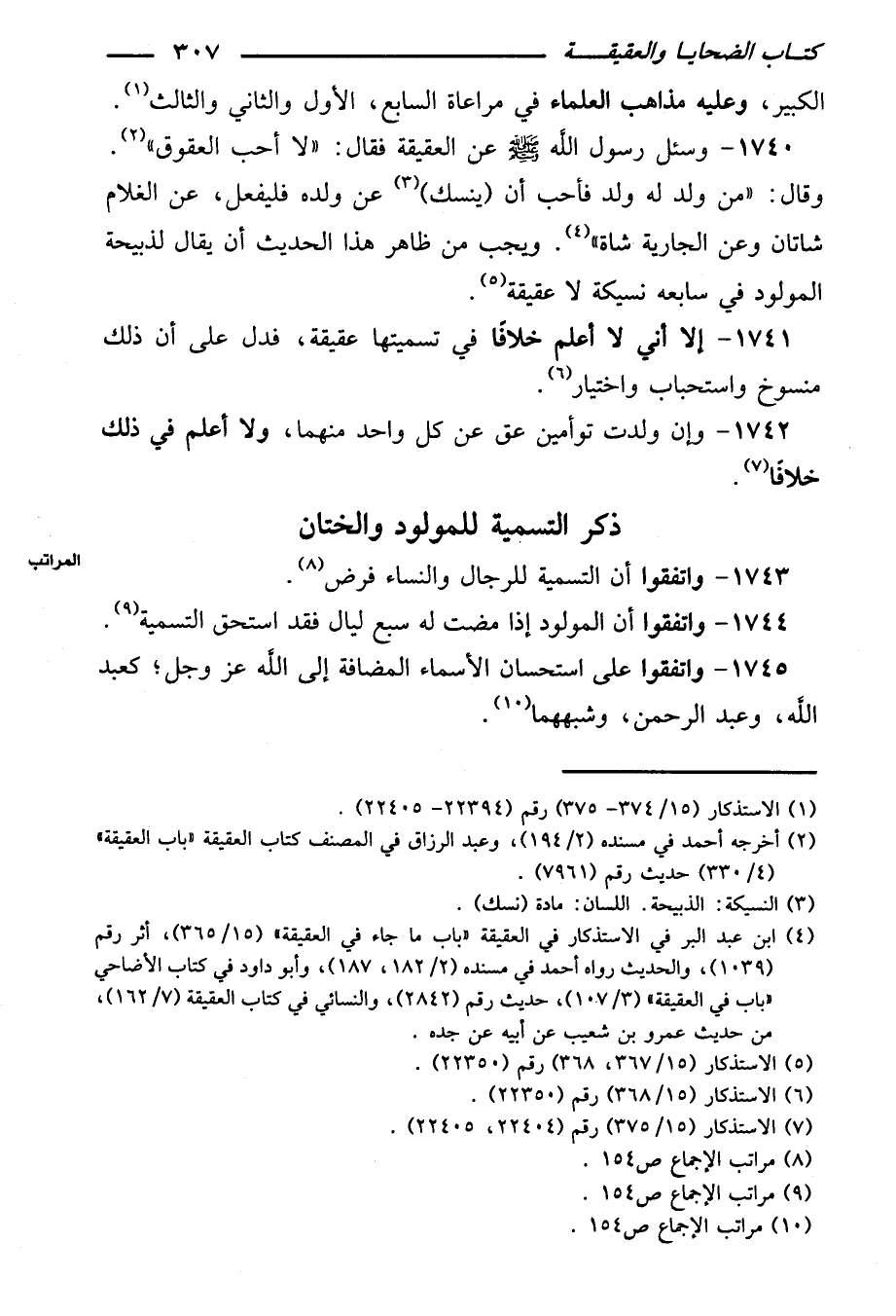 ١٧٤٤ - واتفقوا أن المولود إذا مضت له سبع ليال فقد استحق التسمية.