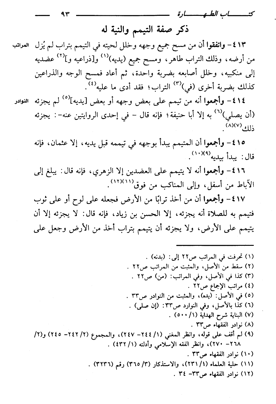 ٤١٦ - وأجمعوا أنه لا يتيمم على العضدين إلا الزهري، فإنه قال: يبلغ إلى الآباط من أسفل، وإلى المناكب من فوق.