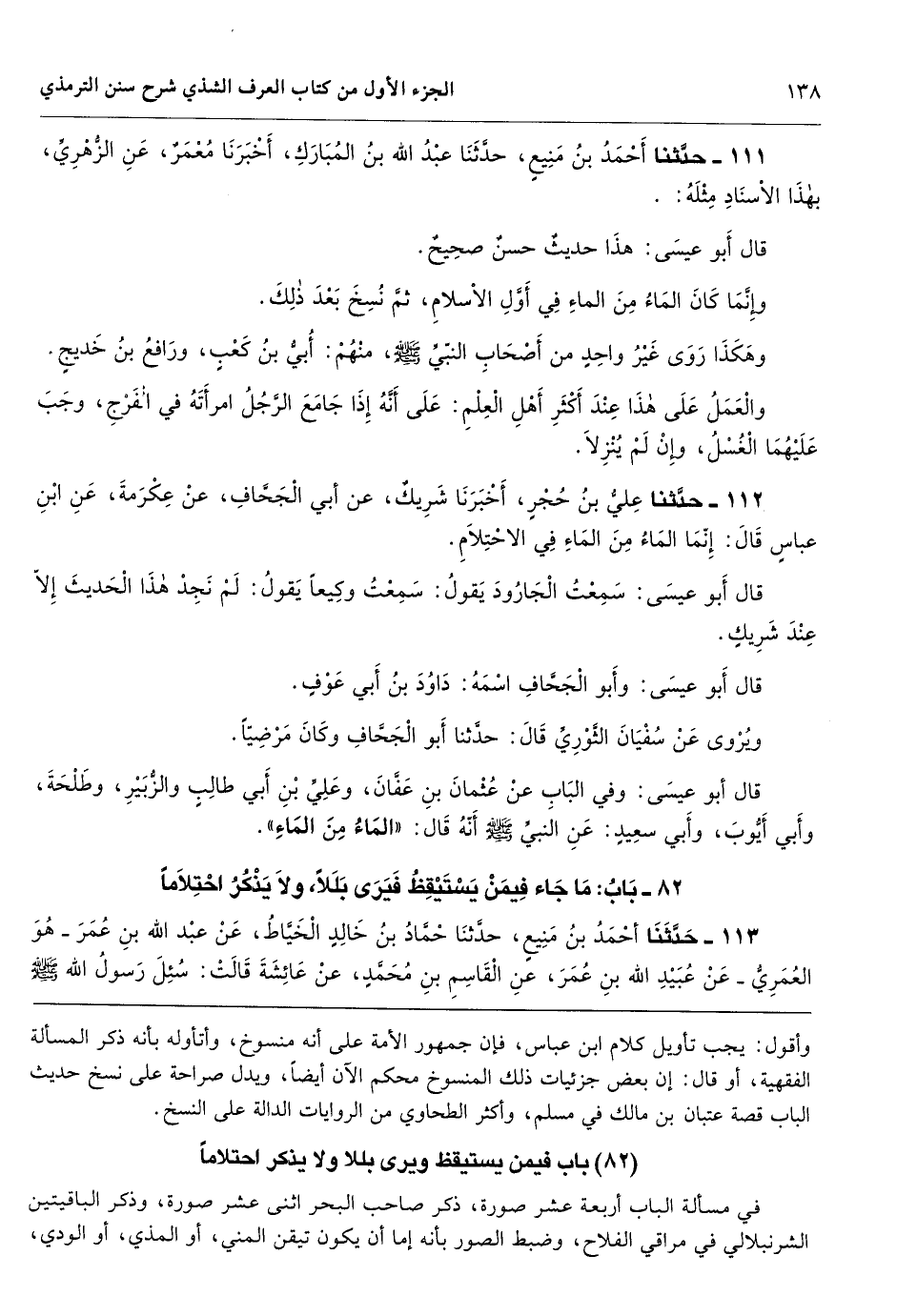 وأقول: يجب تأويل كلام ابن عباس، فإن جمهور الأمة على أنه منسوخ، وأتأوله بأنه ذكر المسألة الفقهية، أو قال: إن بعض جزئيات ذلك المنسوخ محكم الآن أيضاً، ويدل صراحة على نسخ حديث الباب قصة عتبان بن مالك في مسلم، وأكثر الطحاوي من الروايات الدالة على النسخ.