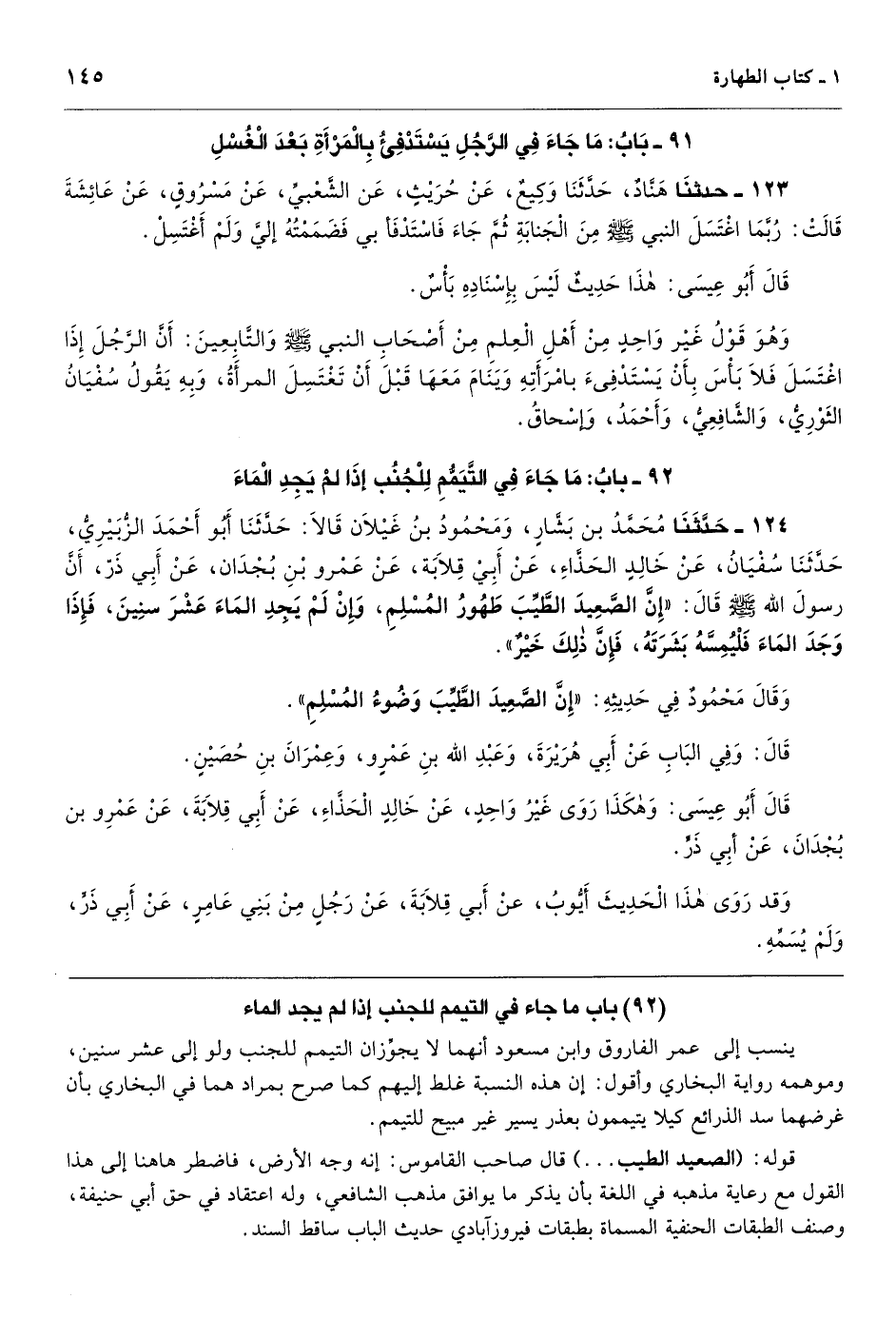 [124] ينسب إلى عمر الفاروق وابن مسعود أنهما لا يجوِّزان التيمم للجنب ولو إلى عشر سنين، وموهمه رواية البخاري وأقول: إن هذه النسبة غلط إليهم كما صرح بمراد هما في البخاري بأن غرضهما سد الذرائع كيلا يتيممون بعذر يسير غير مبيح للتيمم.