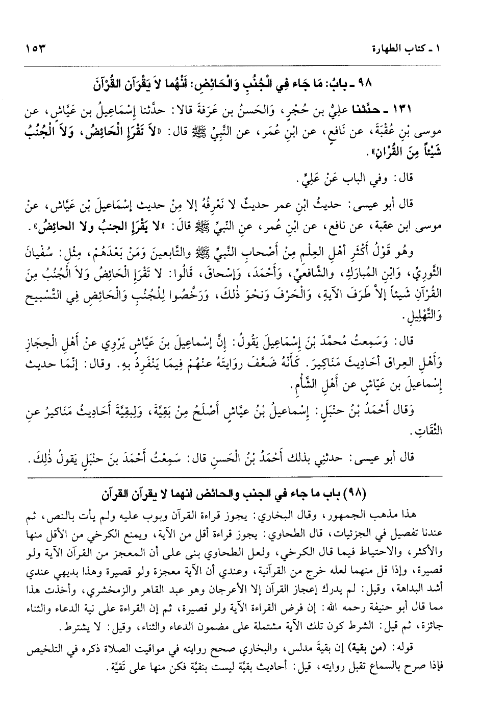 باب ما جاء في الجنب والحائض أنهما لا يقرآن القرآن