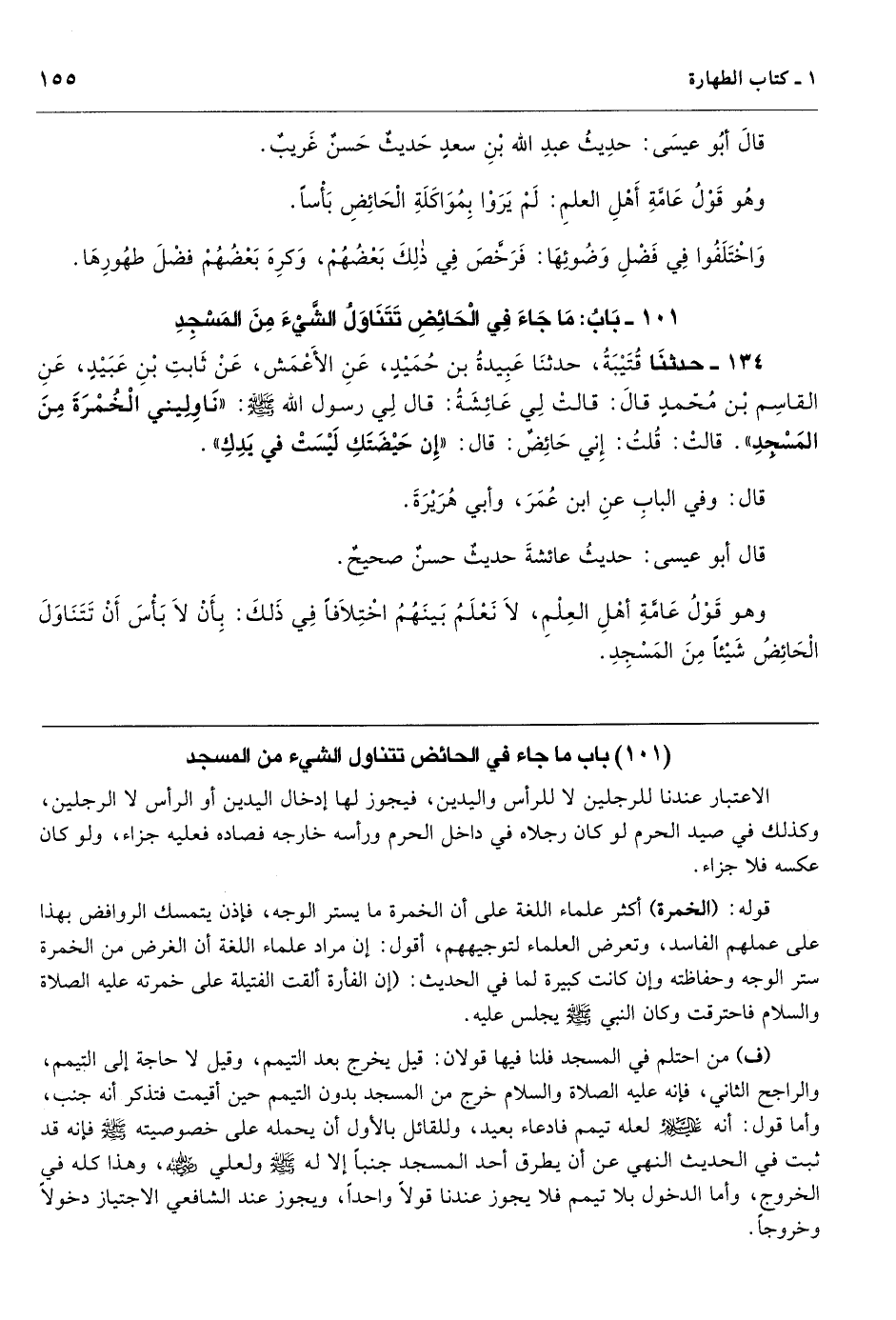 باب ما جاء في الحائض تتناول الشيء من المسجد
