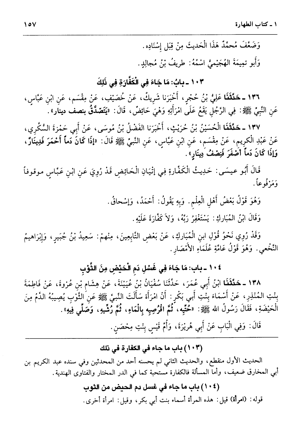 [136] الحديث الأول منقطع، والحديث الثاني لم يحسنه أحد من المحدثين وفي سنده عبد الكريم بن أبي المخارق ضعيف، وأما المسألة فالكفارة مستحبة كما في الدر المختار والفتاوى الهندية.