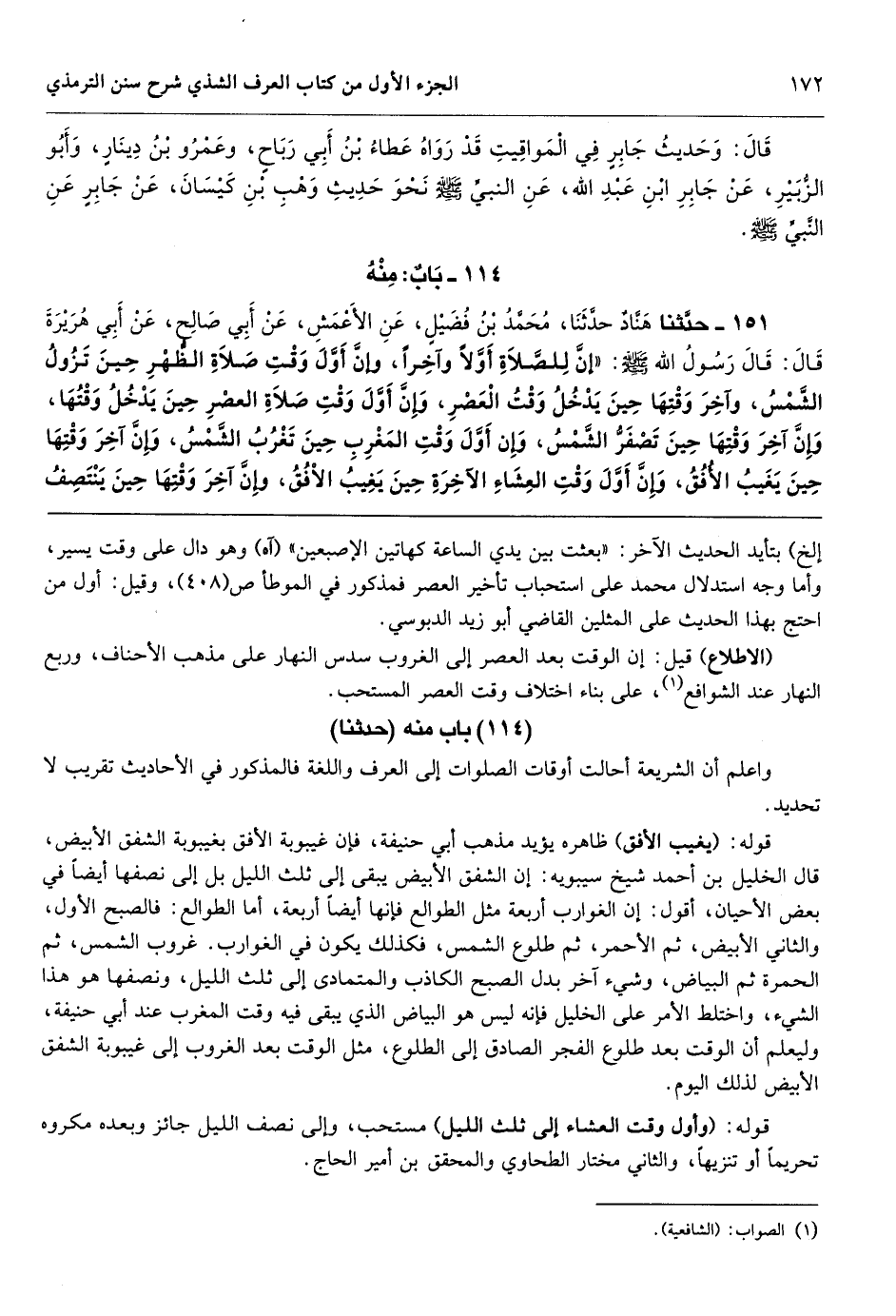 [151] واعلم أن الشريعة أحالت أوقات الصلوات إلى العرف واللغة فالمذكور في الأحاديث تقريب لا تحديد.