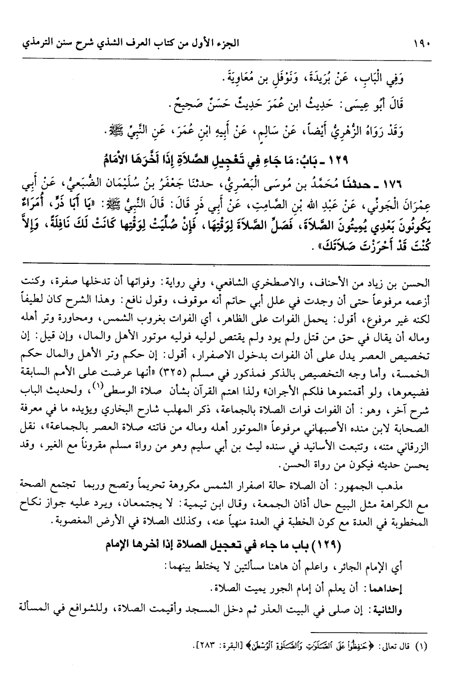 باب ما جاء في تعجيل الصلاة إذا أخرها الإمام