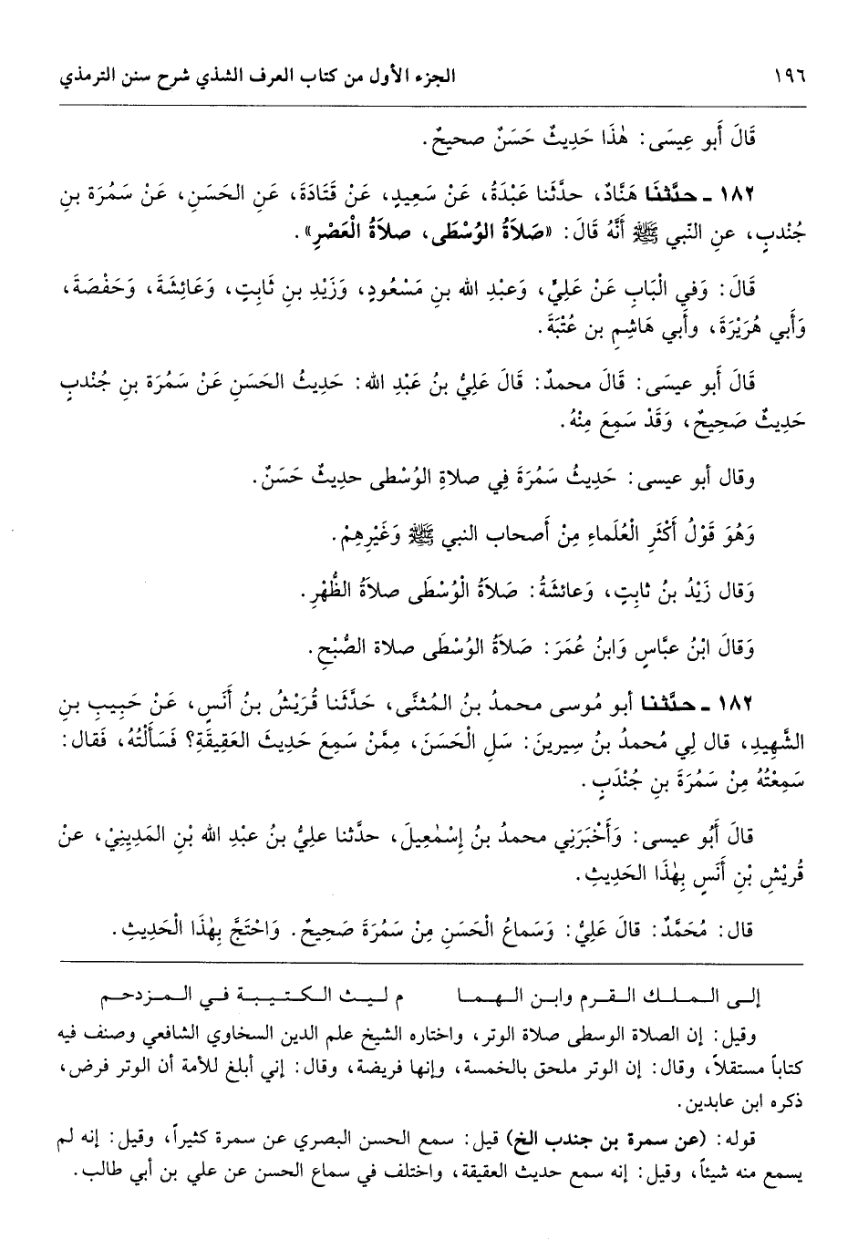 قوله: (عن سمرة بن جندب الخ) قيل: سمع الحسن البصري عن سمرة كثيراً، وقيل: إنه لم يسمع منه شيئاً، وقيل: إنه سمع حديث العقيقة، واختلف في سماع الحسن عن علي بن أبي طالب.