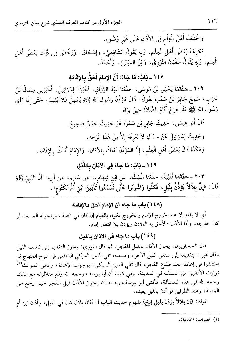 [203] قال الحجازيون: يجوز الأذان بالليل للفجر، ثم قال النووي: يجوز التقديم إلى نصف الليل وقال غيره: بتقديمه إلى سدس الليل الآخر، وصححه تقي الدين السبكي الشافعي في شرح المنهاج ثم اختلفوا في إعادته بعد طلوع الفجر، قال تقي الدين السبكي: بوجوب الإعادة، وادعى الموالك توارث الأذانين من السلف في المدينة، وفي كتبنا أن أبا يوسف رحمه الله وقع مناظرته مع مالك رحمه الله في هذه المسألة، فأفتى أبو يوسف رحمه الله بجواز الأذان قبل الفجر حين رجع من المدينة، وعند الطرفين لو أذن بالليل يعيده.