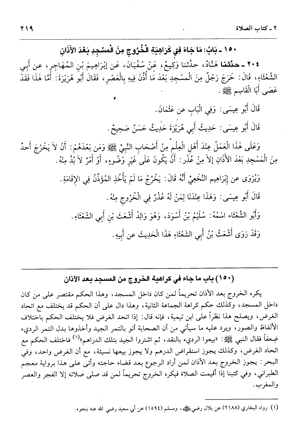باب ما جاء في كراهية الخروج من المسجد بعد الأذان