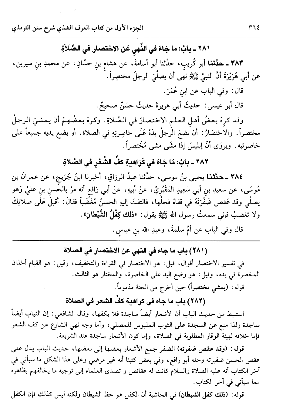 باب ما جاء في النهي عن الاختصار في الصلاة