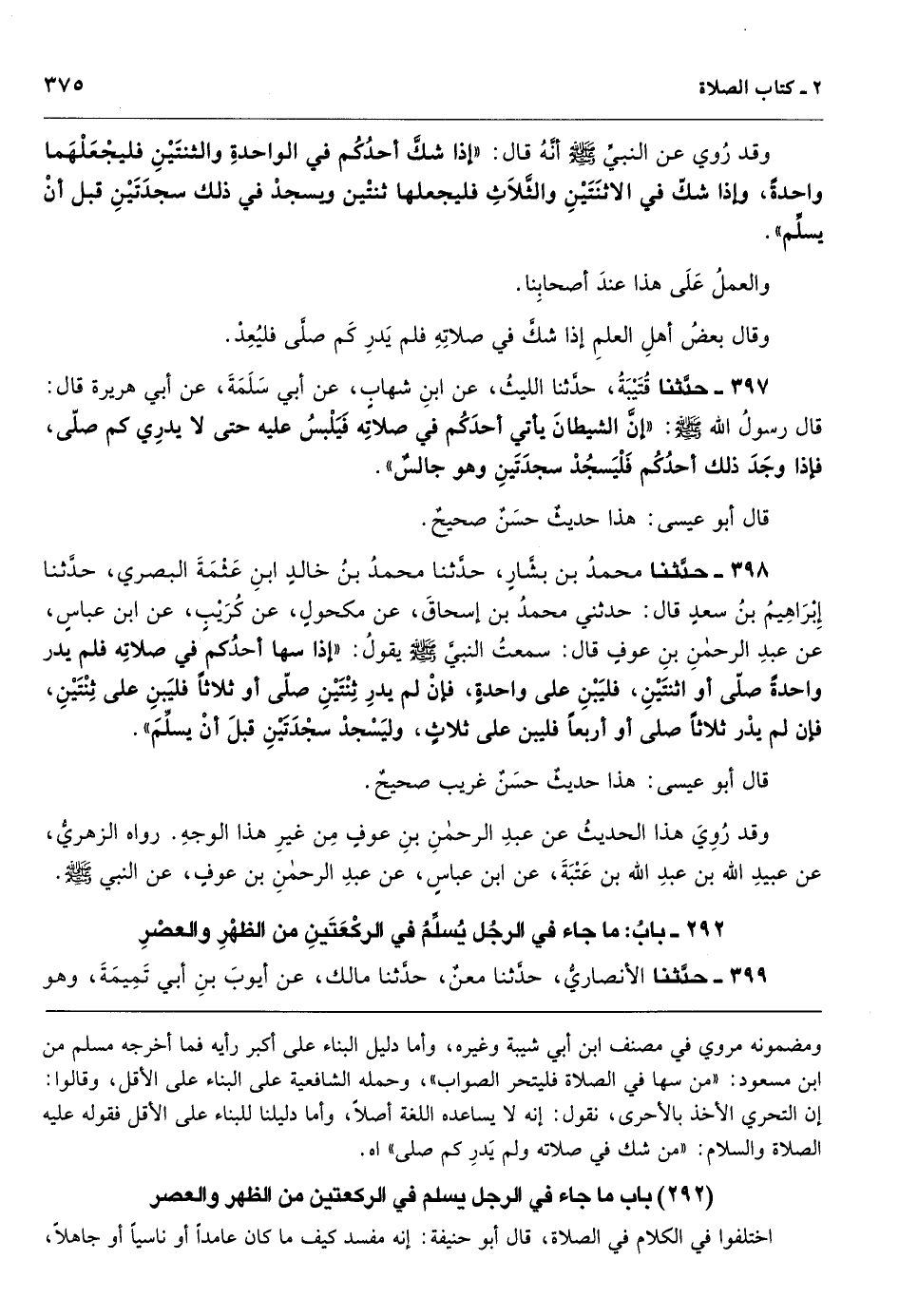 باب ما جاء في الرجل يسلم في الركعتين من الظهر والعصر
