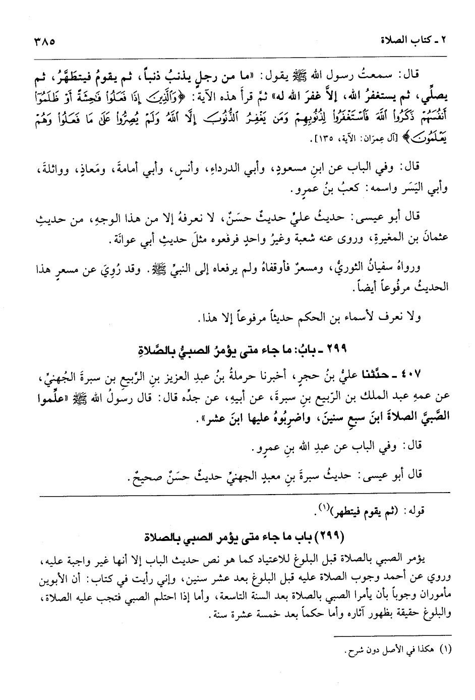 باب ما جاء متى يؤمر الصبي بالصلاة