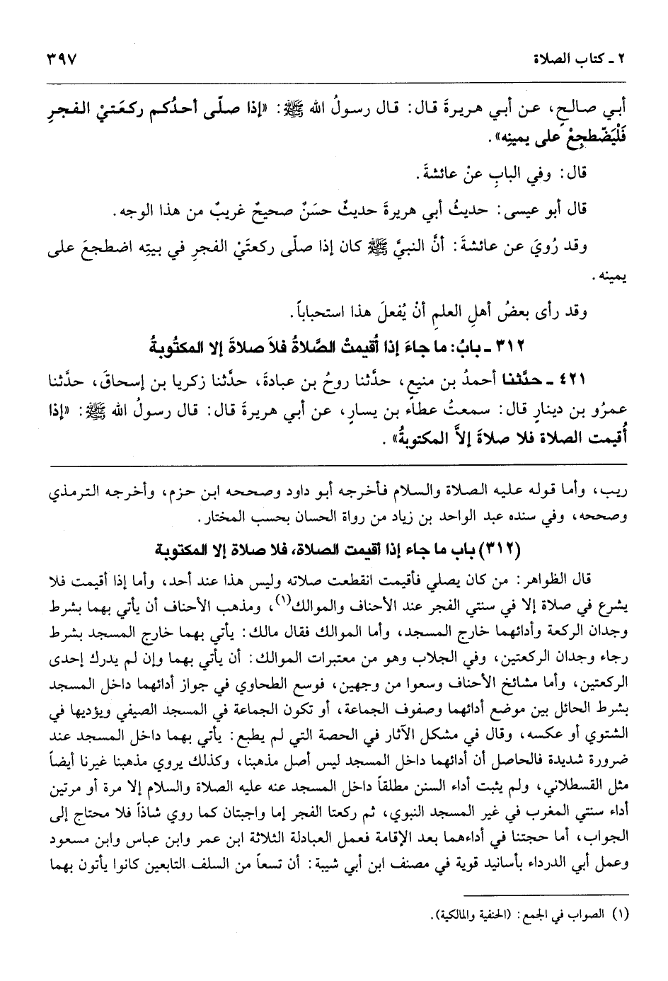باب ما جاء إذا أقيمت الصلاة فلا صلاة إلا المكتوبة