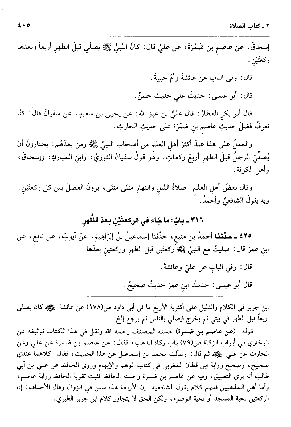 قوله: (عن عاصم بن ضمرة) حسنه المصنف رحمه الله ونقل في هذا الكتاب توثيقه عن البخاري في أبواب الزكاة ص (79) باب زكاة الذهب، فقال: عن عاصم بن ضمرة عن علي وعن الحارث عن علي ثم قال: وسألت محمد بن إسماعيل عن هذا الحديث، فقال: كلاهما عندي صحيح، وصحح رواية ابن قطان المغربي في كتاب الوهم والإبهام وروى الحافظ عن علي بن أبي طالب أنه يرى التطبيق، وفيه عن عاصم بن ضمرة وحسنه الحافظ فثبت تقوية الحافظ رواية عاصم، وأما أهل المذهبين فلهم كلام يقول الشافعية: إن الأربعة هذه سنن في الزوال وقال الأحناف: إن الركعتين تحية المسجد أو تحية الوضوء، ولكن الحق لا يتجاوز كلام ابن جرير الطبري.
