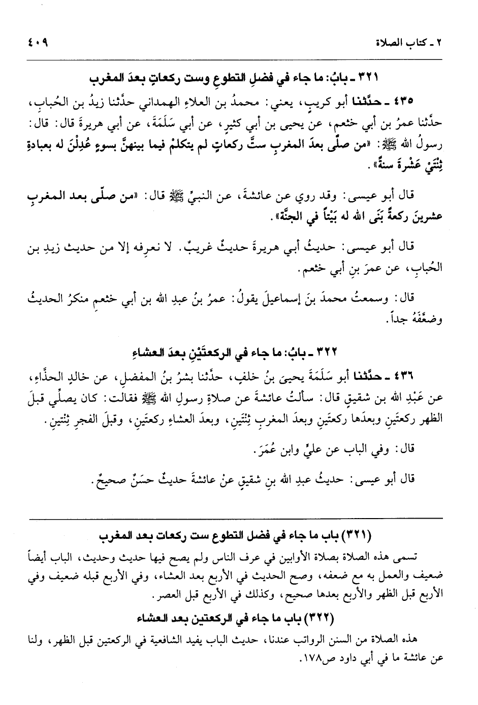 باب ما جاء في فضل التطوع ست ركعات بعد المغرب