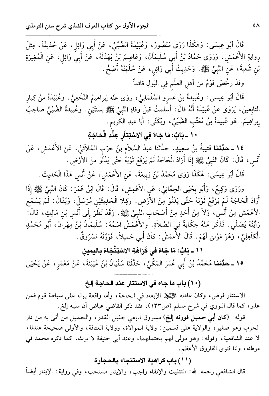 [14] الاستتار فرض، وكان عادته الإبعاد في الحاجة، وأما واقعة بوله على سباطة قوم فمن عذر، كما قال النووي في شرح مسلم (ص133) ، فقد ذكر القاضي عياض أن سببه إلخ.