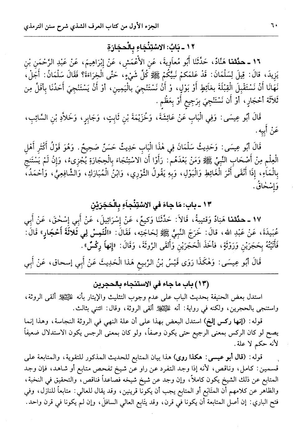 [17] استدل بعض الحنيفة بحديث الباب على عدم وجوب التثليث والإيتار بأنه ألقى الروثة، واستنجى بالحجرين، ولكنه في رواية: أنه ألقى الروثة، وقال: ائتني بثالث.