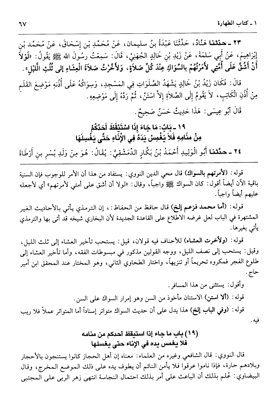 قوله: (وفي الباب إلخ) هذا يدل على أن حديث السواك متواتر إسناداً أما المتواتر عملاً فلا ريب فيه.