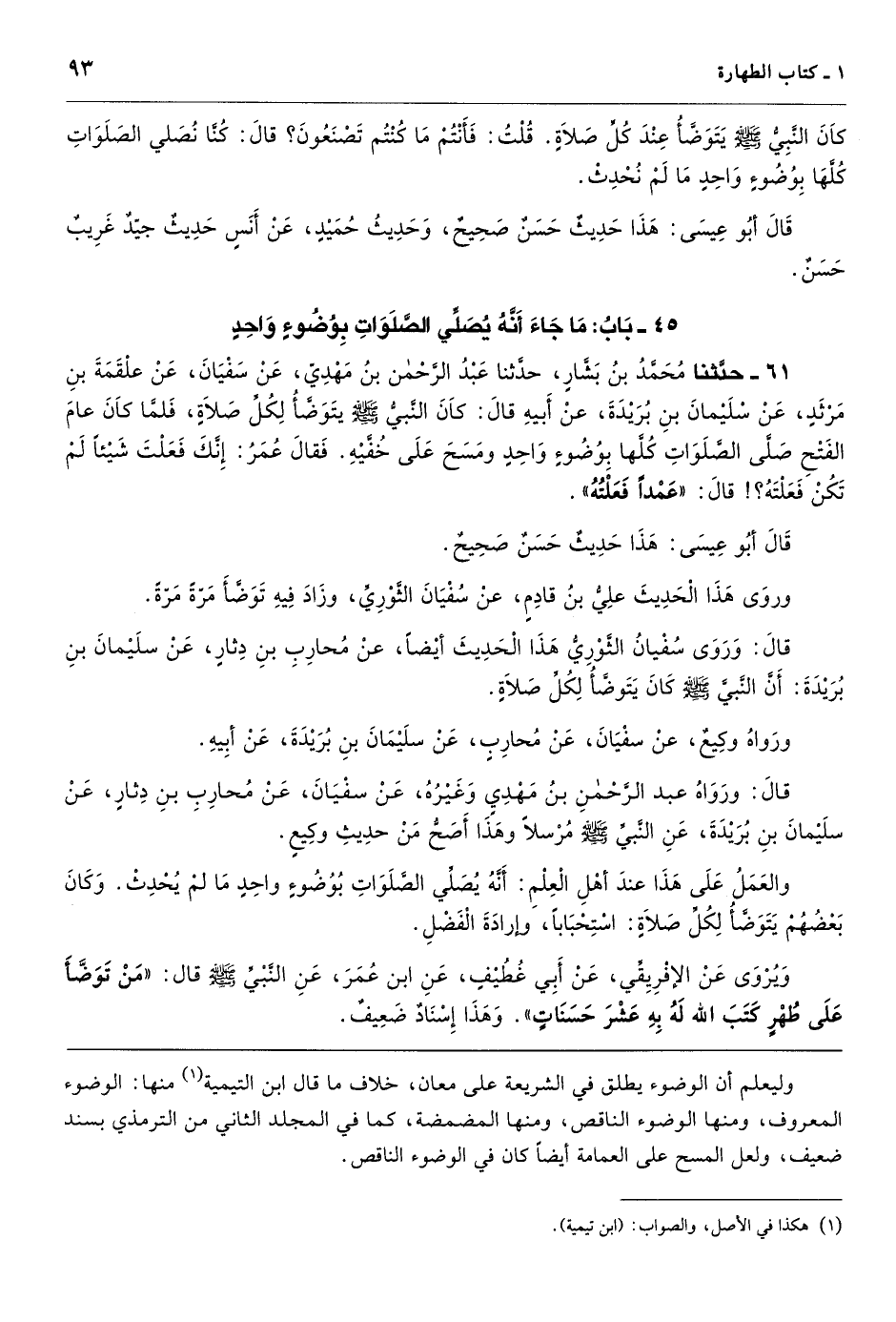 وليعلم أن الوضوء يطلق في الشريعة على معان، خلاف ما قال ابن التيمية منها: الوضوء المعروف، ومنها الوضوء الناقص، ومنها المضمضة، كما في المجلد الثاني من الترمذي بسند ضعيف، ولعل المسح على العمامة أيضاً كان في الوضوء الناقص.