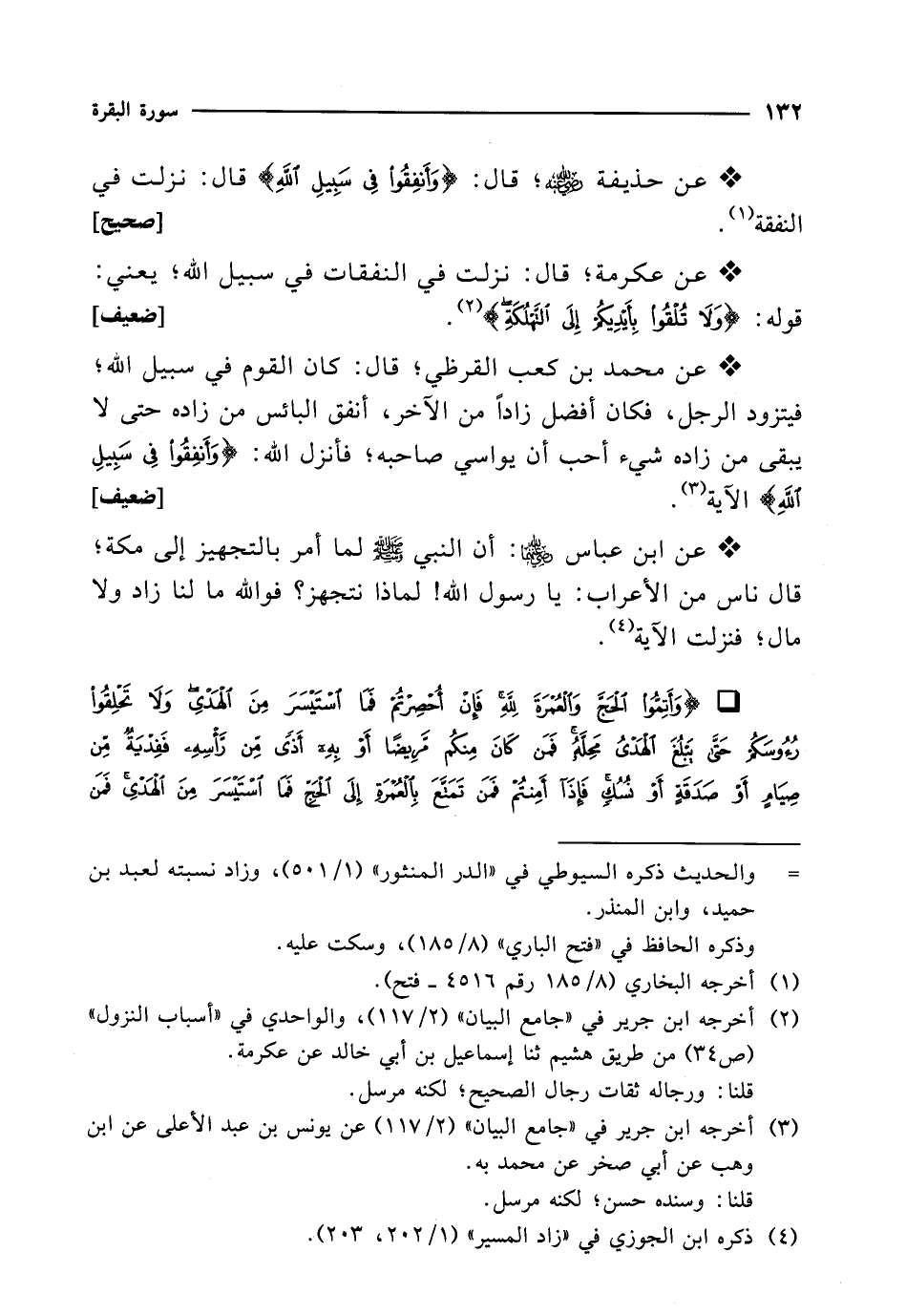 * عن حذيفة -رضي الله عنه-؛ قال: {وَأَنْفِقُوا فِي سَبِيلِ اللَّهِ} قال: نزلت في النفقة (¬1). [صحيح]