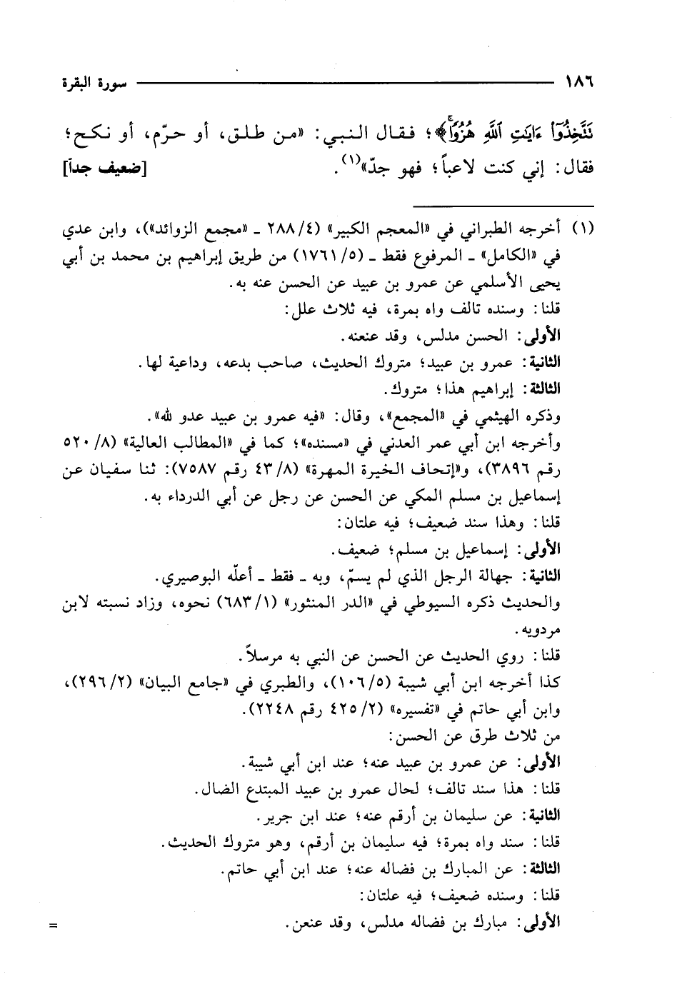 تَتَّخِذُوا آيَاتِ اللَّهِ هُزُوًا}؛ فقال النبي: "من طلق، أو حرّم، أو نكح؛ فقال: إني كنت لاعباً؛ فهو جدّ" (¬1). [ضعيف جداً]