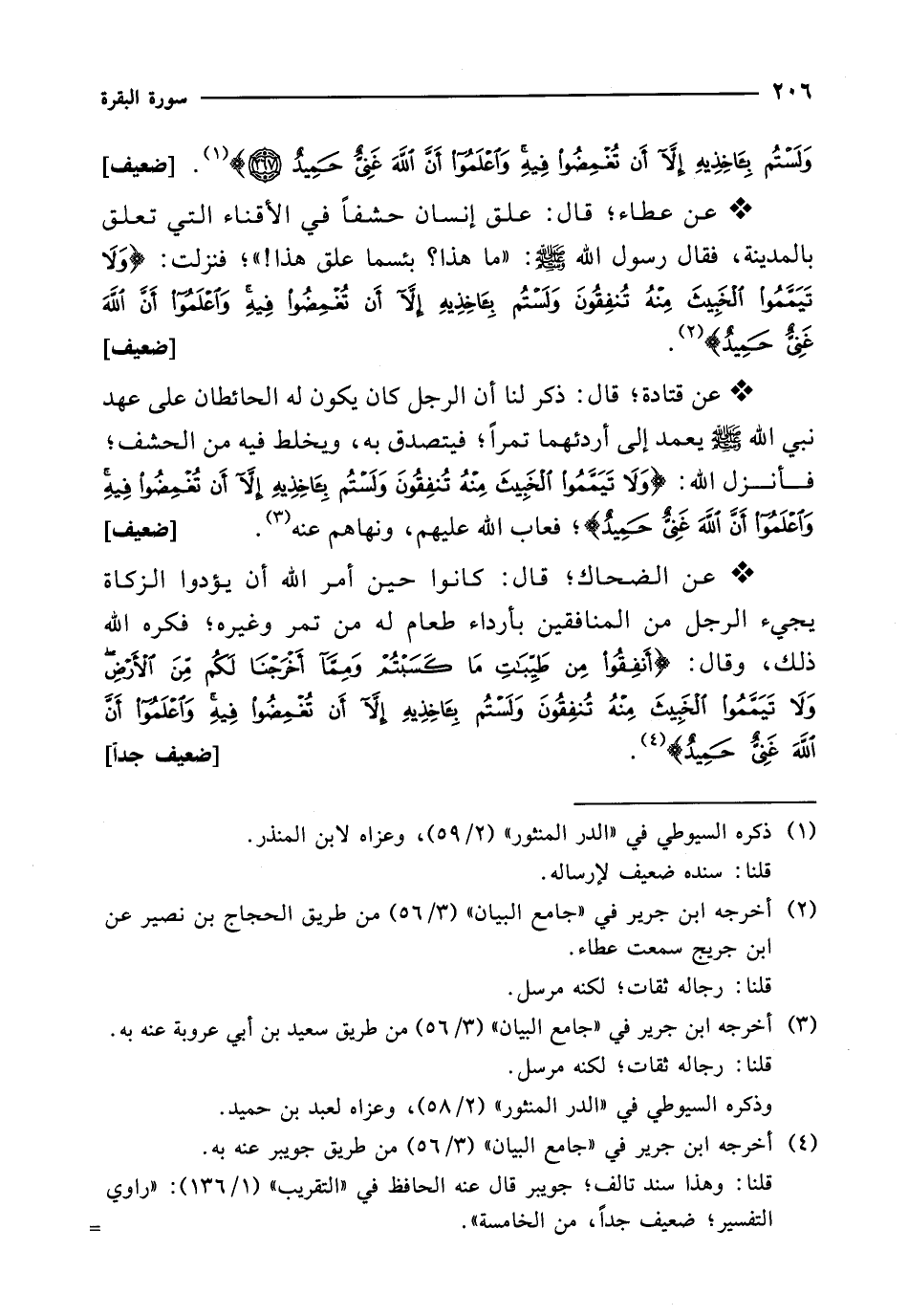 وَلَسْتُمْ بِآخِذِيهِ إِلَّا أَنْ تُغْمِضُوا فِيهِ وَاعْلَمُوا أَنَّ اللَّهَ غَنِيٌّ حَمِيدٌ (267)} (¬1). [ضعيف]