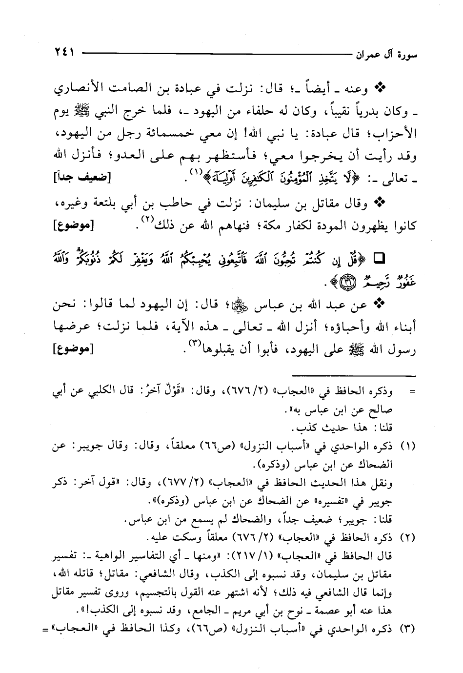 (¬3) ذكره الواحدي في "أسباب النزول" (ص 66)، وكذا الحافظ في "العجاب" =