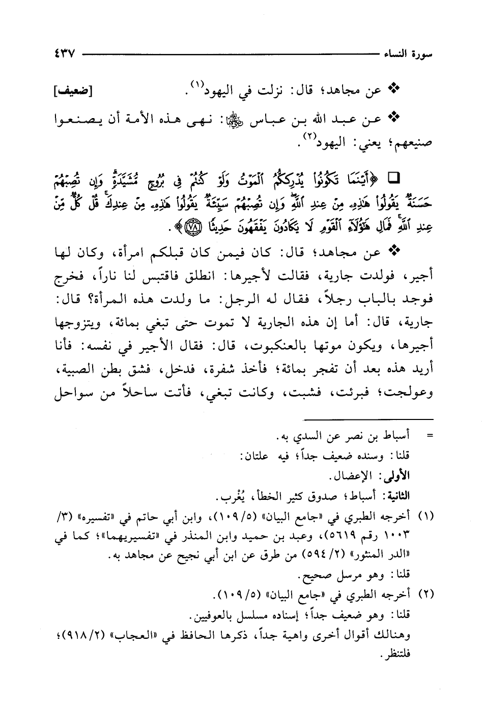 * عن مجاهد؛ قال: نزلت في اليهود (¬1). [ضعيف]