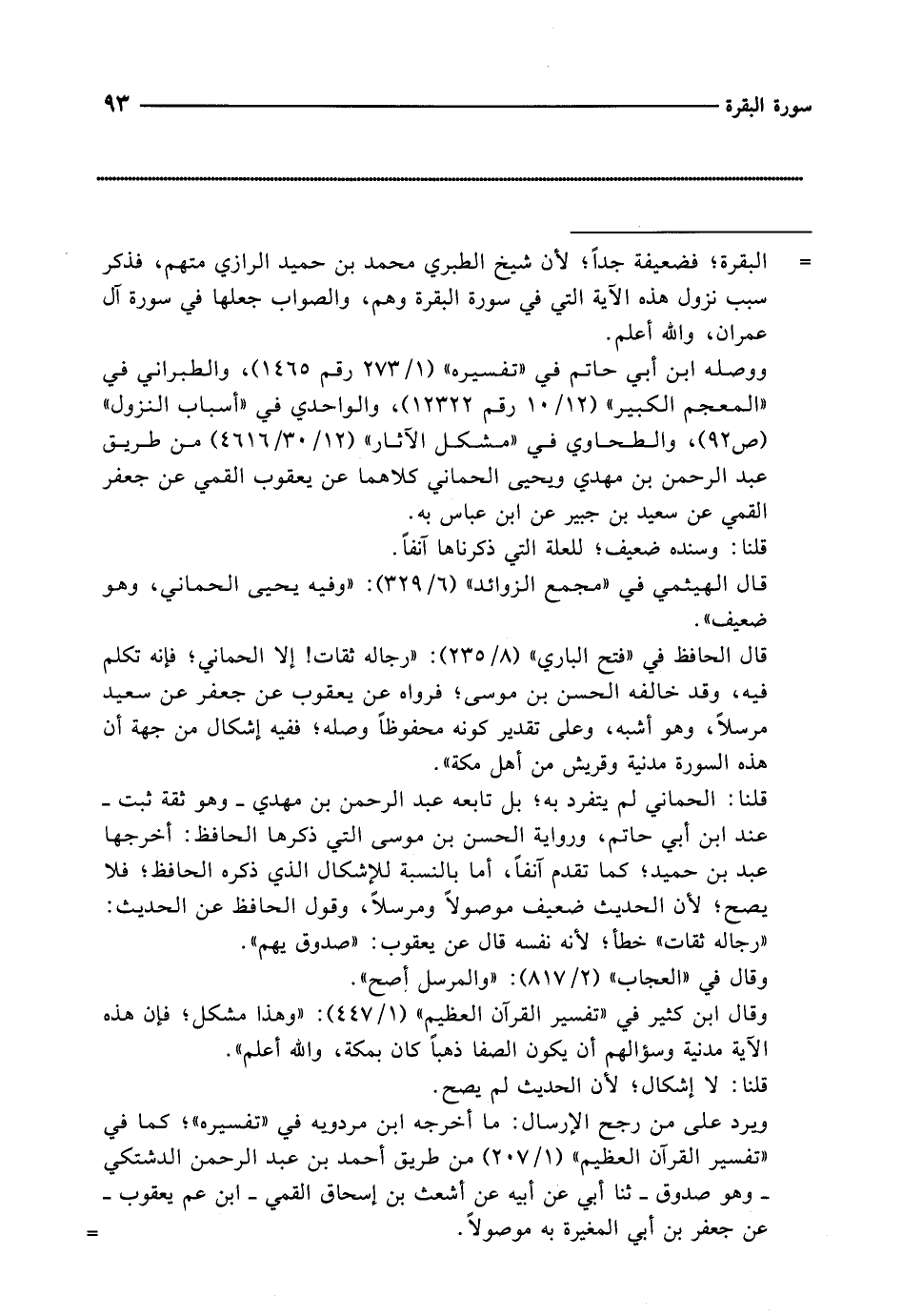 ووصله ابن أبي حاتم في "تفسيره" (1/ 273 رقم 1465)، والطبراني في "المعجم الكبير" (12/ 10 رقم 12322)، والواحدي في "أسباب النزول" (ص 92)، والطحاوي في "مشكل الآثار" (12/ 30/ 4616) من طريق عبد الرحمن بن مهدي ويحيى الحماني كلاهما عن يعقوب القمي عن جعفر القمي عن سعيد بن جبير عن ابن عباس به.