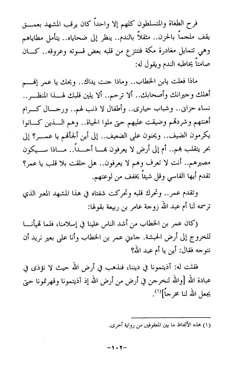 ماذا فعلت يابن الخطاب .. وماذا جنت يداك .. ويحك يا عمر إنهم أهلك وجيرانك وأصحابك .. ألا ترحم .. ألا يلين قلبك لهذا المنظر .. نساء حزانى .. وشباب حيارى .. وأطفال لا ذنب لهم .. ورجال كرام أهنتهم وشردتهم وضيقت عليهم حتى ملوا الحياة .. وهم الذين كانوا يكرمون الضيف .. ويحنون على الضعيف .. إلى أين ألجأتهم يا عمر؟ إلى بحر يتقلب بهم .. أم إلى أرض لا يعرفون بها أحدًا .. ماذا سيكون مصيرهم .. أنت لا تعرف وهم لا يعرفون .. هل خلقت بلا قلب يا عمر؟ تقدم أيها القاسي وقل شيئًا يخفف من لوعتهم.