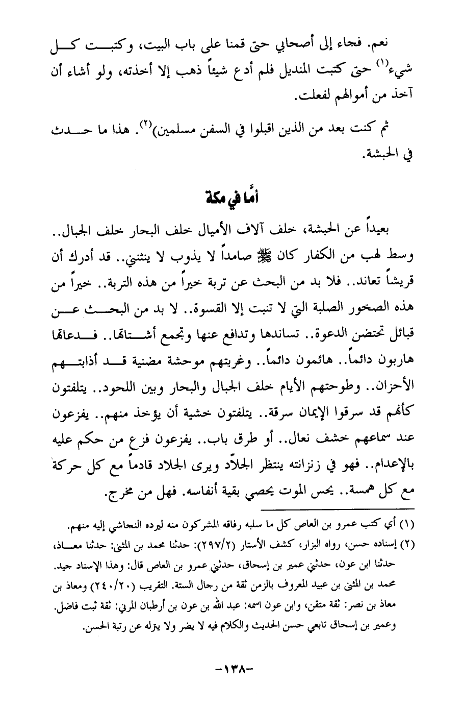(¬2) إسناده حسن، رواه البزار، كشف الأستار (2/ 297): حدثنا محمَّد بن المثنى: حدثنا معاذ، حدثنا ابن عون، حدثني عمير بن إسحاق، حدثني عمرو بن العاص قال: وهذا الإسناد جيد. محمَّد بن المثني بن عبيد المعروف بالزمن ثقة من رجال الستة. التقريب (20/ 240) ومعاذ بن معاذ بن نصر: ثقة متقن، وابن عون اسمه: عبد الله بن عون بن أرطبان المرني: ثقة ثبت فاضل. وعمير بن إسحاق تابعي حسن الحديث والكلام فيه لا يضر ولا ينزله عن رتبة الحسن.