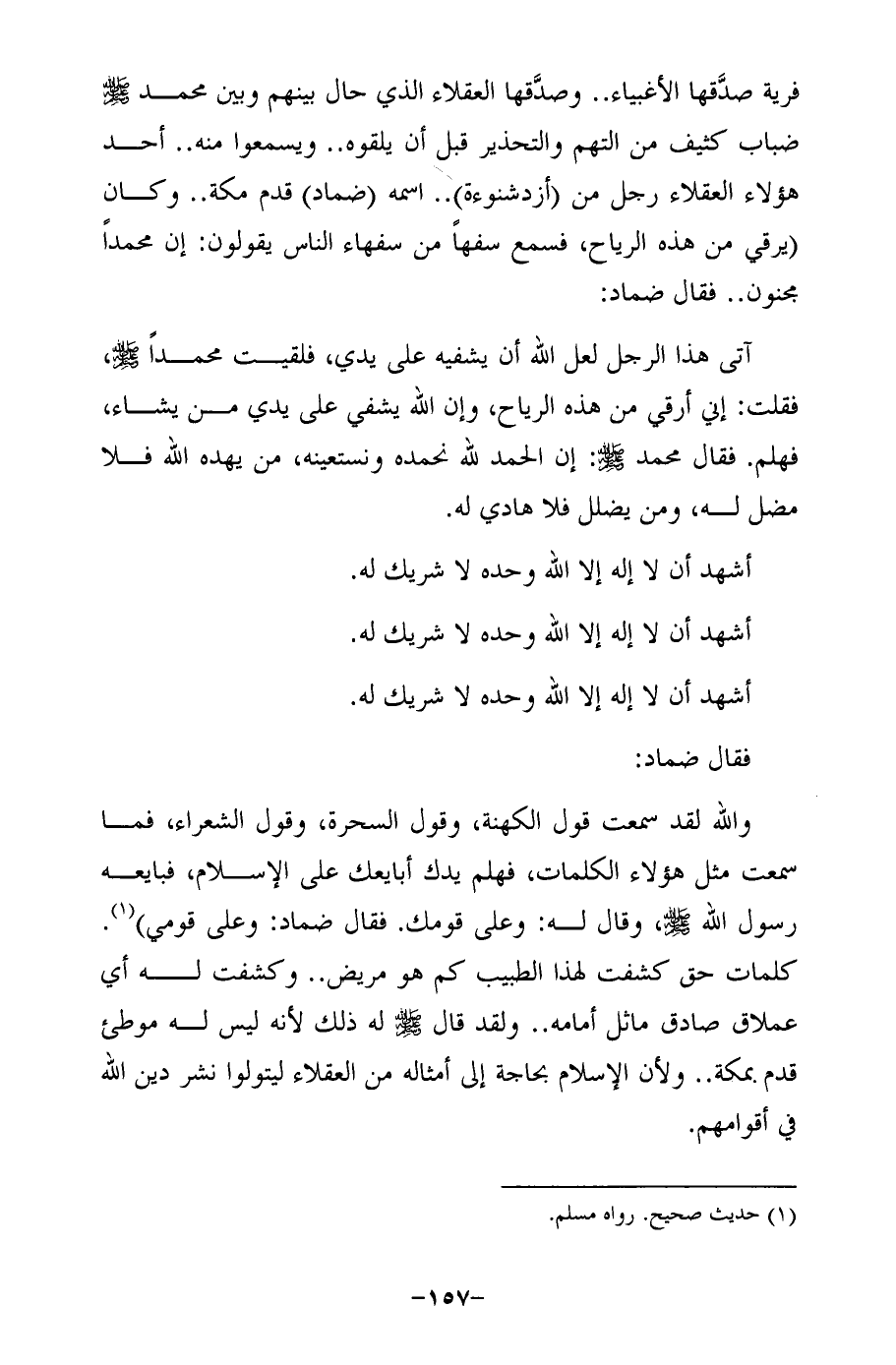 آتى هذا الرجل لعل الله أن يشفيه على يدي، فلقيت محمدًا - صلى الله عليه وسلم -، فقلت: إني أرقي من هذه الرياح، وإن الله يشفي على يدي من يشاء، فهلم. فقال محمَّد - صلى الله عليه وسلم -: إن الحمد لله نحمده ونستعينه، من يهده الله فلا مضل له، ومن يضلل فلا هادي له.