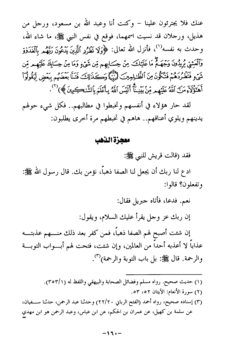 ادع لنا ربك أن يجعل لنا الصفا ذهبًا، نؤمن بك. قال رسول الله -صلى الله عليه وسلم -: وتفعلون؟ قالوا: