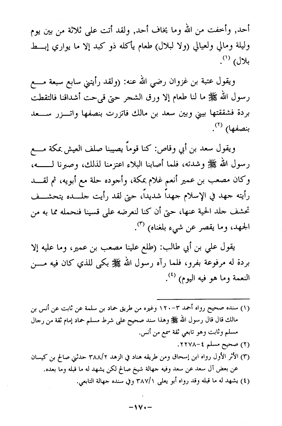 (¬3) الأثر الأول رواه ابن إسحاف ومن طريقه هناد في الزهد 2/ 388 حدثني صالح بن كيسان عن بعض آل سعد عن سعد وفيه جهالة شيخ صالح لكن يشهد له ما قبله وما بعده.