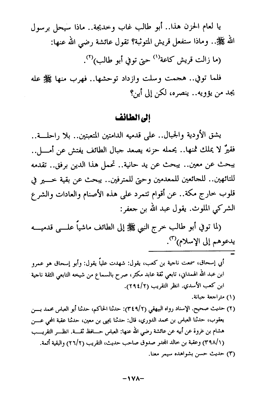 (لما توفي أبو طالب خرج النبي - صلى الله عليه وسلم - إلى الطائف ماشيًا على قدميه يدعوهم إلى الإِسلام) (¬3).