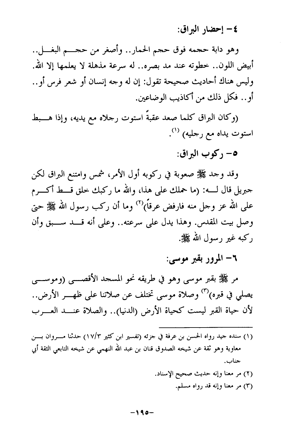 مر - صلى الله عليه وسلم - بقبر موسى وهو في طريقه نحو المسجد الأقصى (وموسى يصلي في قبره) (¬3) وصلاة موسى تختلف عن صلاتنا على ظهر الأرض .. لأن حياة القبر ليست كحياة الأرض (الدنيا) .. والصلاة عند العرب