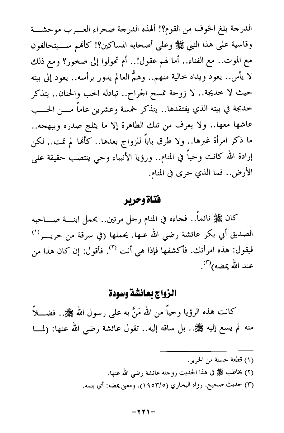 كان - صلى الله عليه وسلم - نائمًا .. فجاءه في المنام رجل مرتين .. يحمل ابنة صاحبه الصديق أبي بكر عائشة رضي الله عنها. يحملها (في سرقة من حرير (¬1) فيقول: هذه امرأتك. فأكشفها فإذا هي أنت (¬2). فأقول: إن كان هذا من عند الله يمضه) (¬3).