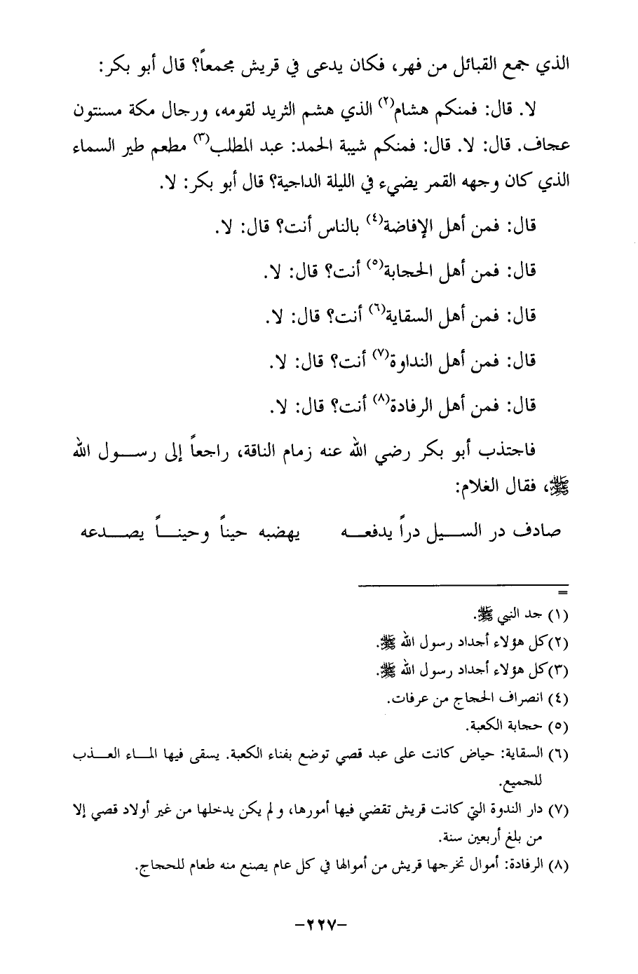 (¬7) الرفادة: أموال تخرجها قريش من أموالها في كل عام يصنع منه طعام للحجاج.