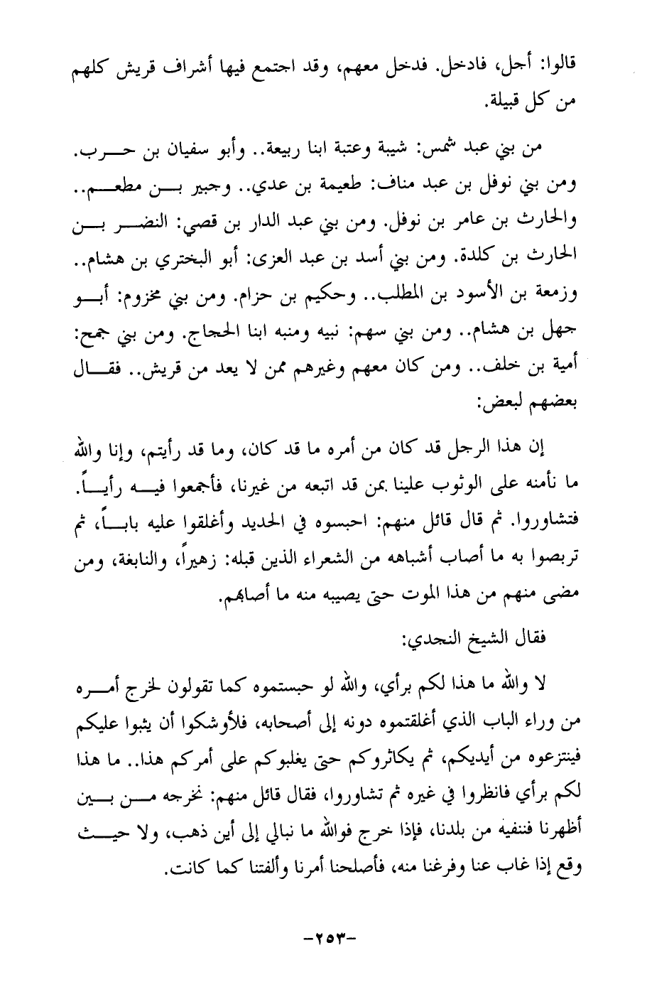 قالوا: أجل، فادخل. فدخل معهم، وقد اجتمع فيها أشراف قريش كلهم من كل قبيلة.