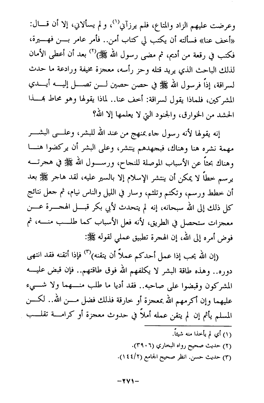 (إن الله يحب إذا عمل أحدكم عملًا أن يتقنه) (¬3) فإذا أتقنه فقد انتهى دوره .. وهذه طاقة البشر لا يكلفهم الله فوق طاقتهم .. فإن قبض عليه المشركون وقبضوا على صاحبه .. فقد أديا ما طلب منهما ولا شيء عليهما وإن أكرمهم الله بمعجزة أو خارقة فذلك فضل من الله .. لكن المسلم يأثم إن لم يتقن عمله أملًا في حدوث معجزة أو كرامة تقلب