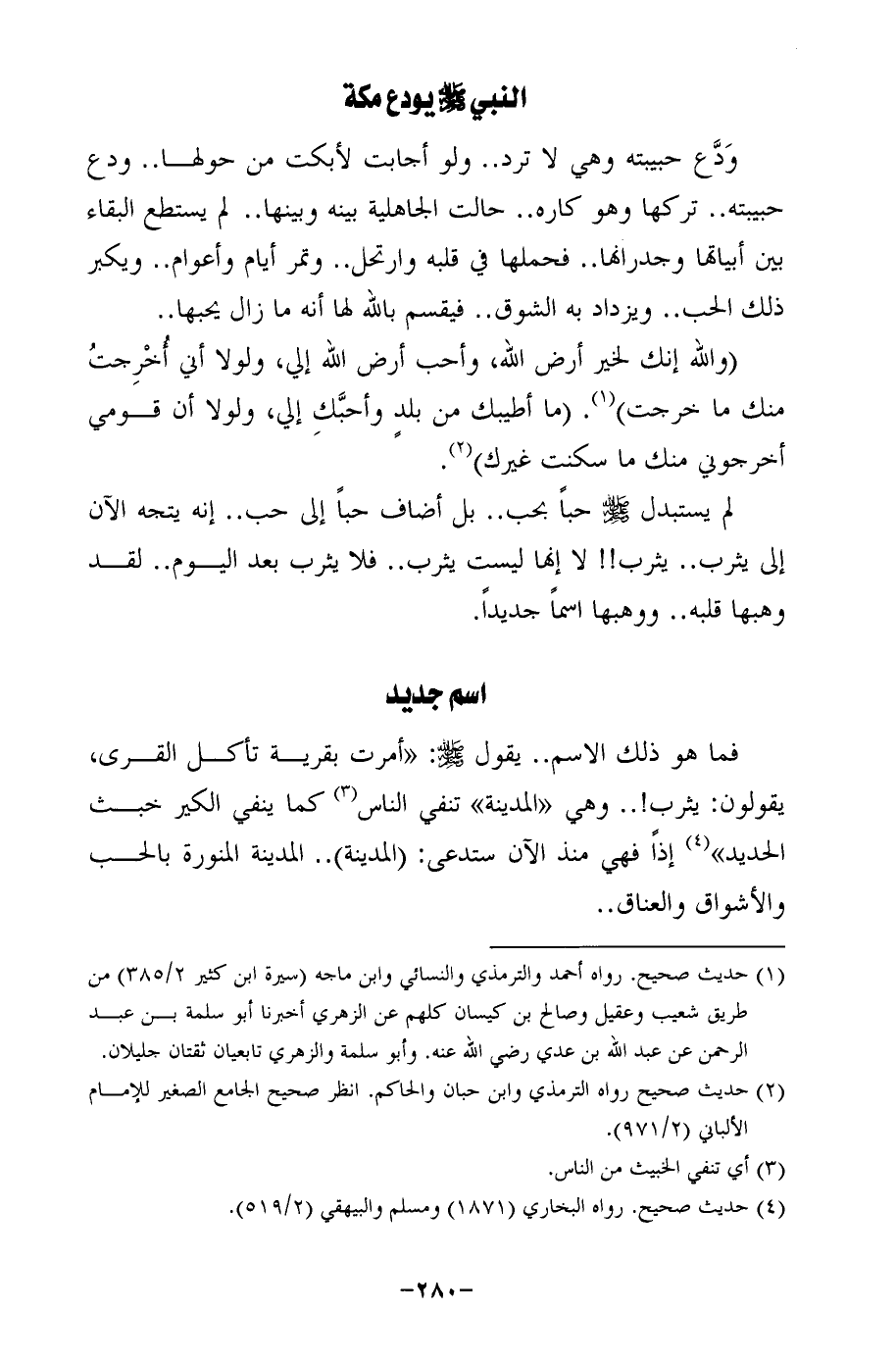 لم يستبدل - صلى الله عليه وسلم - حبًا بحب .. بل أضاف حبًا إلى حب .. إنه يتجه الآن إلى يثرب .. يثرب!! لا إنها ليست يثرب .. فلا يثرب بعد اليوم .. لقد وهبها قلبه .. ووهبها اسمًا جديدًا.