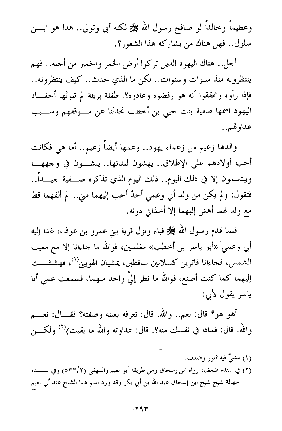 والدها زعيم من زعماء يهود .. وعمها أيضًا زعيم .. أما هي فكانت أحب أولادهم على الإطلاق .. يهشون للقائها .. يبشون في وجهها ويبتسمون إلا في ذلك اليوم .. ذلك اليوم الذي تذكره صفية جيدًا .. فتقول: (لم يكن من ولد أبي وعمي أحدٌ أحب إليهما مني .. لم ألقهما قط مع ولد لهما أهش إليهما إلا أخذاني دونه.