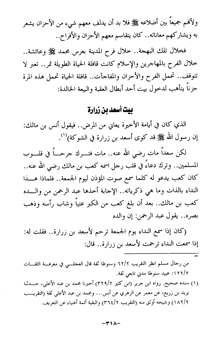 فخلال تلك البهجة .. خلال فرح المدينة بعرس محمَّد - صلى الله عليه وسلم - وعائشة .. خلال الفرح بالمهاجرين والإِسلام كانت قافلة الحياة الطويلة تمر .. تعبر لا تتوقف .. تحمل الفرح والأحزان والمفاجآت .. قافلة الحياة تحمل هذه المرة حزنًا يتأهب لدخول بيت أحد أبطال العقبة والبيعة الخالدة: